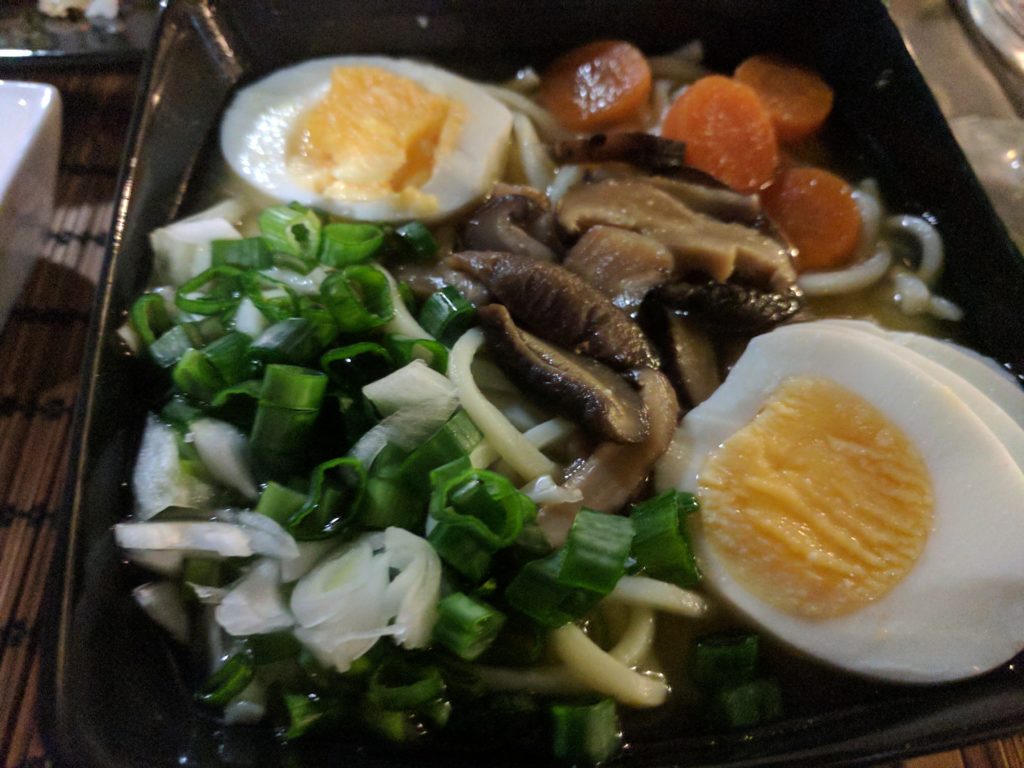 המיקום של המסעדה יצא מעולה כי הוא היה קרוב לספא שהלכתי לעשות בו מסאג'. הגענו למסעדה לארוחת ערב וישבנו בחוץ. המלצר היה ממש נחמד והסביר לנו על התפריט. בחרנו להזמין מרקי ראמן. רומן לקח מרק ראמן עם בשר חזיר והוא בחר בגודל הגדול ואני בחרתי במרק ראמן עם שרימפס ובחרתי בגודל רגיל.