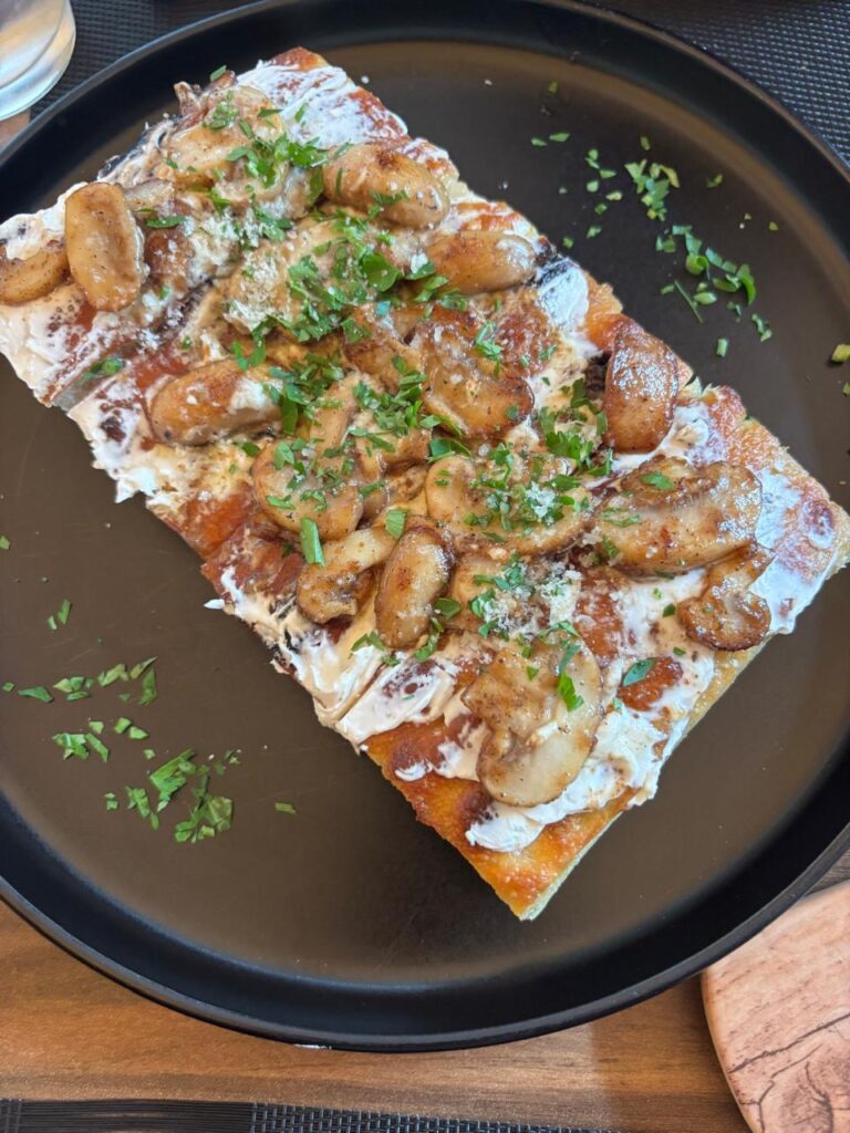 Sunday in Lisboa חנות קונספט שנפתחה בסוף דצמבר 2023 ובתוכה יש מסעדת קפה פורטוגלית. אנחנו ממש התלהבנו מהמקום בגלל השירות, העיצוב, האוכל והיין. יש להם תפריט מגוון של סלטים, כריכים, פסטות ופלטות גבינות ונקניקים. הזמנו שם את כריך ליסבון שהיה לטעמי קצת שומני אבל חברה שלי אהבה אותו מאוד. כריך נקניק חמון שרומן אהב, סלט גבינת עיזים שכולנו אהבנו ופסטת רביולי כמהין שהיתה פשוט מעולה. הזמנו את היין הראשון מרשימת היינות הלבנים שהוא חמצמץ וקליל וכולנו עפנו עליו. בנוסף הם מגישים שם את אחד הקינוחים האהובים עליי Pastel de Nata סוג של קרם בורלה בתוך מאפה. אם עוד לא ניסיתם את הקינוח הזה אתם חייבים לנסות. בקיצור ממש אהבנו את המקום.