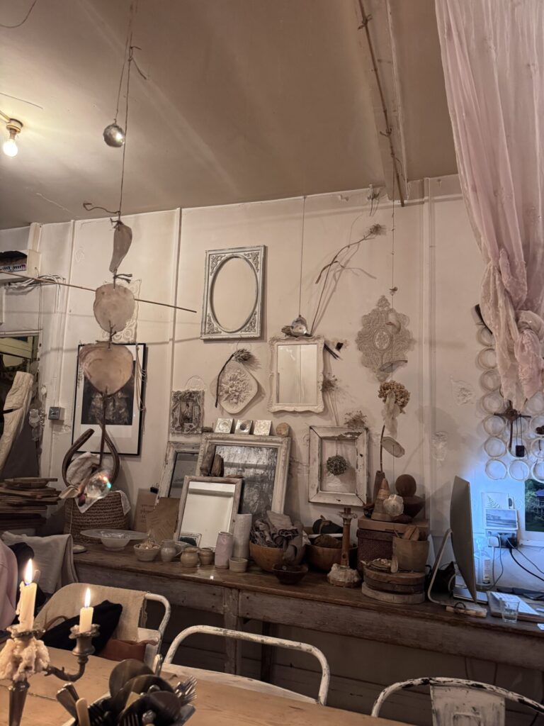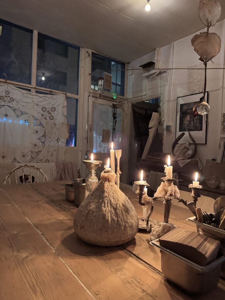 דבר ראשון, מומלץ להתקשר אליהם לפני כי לא תמיד יש מקום והם לא תמיד פתוחים. מדובר במקום קטן מאוד עם מספר מצומצם של מקומות, וקשה אפילו לקרוא לזה מסעדה. זה יותר נראה כמו חלל אמנותי או סטודיו, עם שולחנות בודדים, תאורה רכה מאוד ואווירה אינטימית כמעט “סודית” אם לא הייתי מגיעה עם אח שלי שהיה שם לפני הייתי חושבת שטעינו במקום.