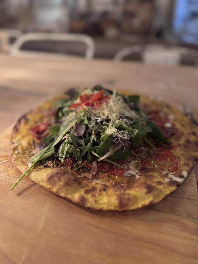 מי שמגיע לשם מגיע לחוויה ולא רק לאכול (למרות שהפיצה באמת בין הטובות והמיוחדות שאכלתי) , כי זה באמת מקום מיוחד. הזוג שמנהל את המקום סופר חמוד ומעניין (ממליצה לדבר איתם כי הם כאלה נחמדים ומצחיקים). לי שאחראי על המטבח מכין שם הכל בעצמו, משתמש רק בחומרי גלם אורגניים ומשקיע בכל פיצה עם שילובים יצירתיים של התוספות. הבצק דק דק ופריך והמהות של הפיצה היא התוספות שמעליה.