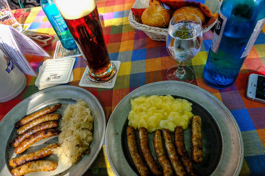 העיצוב של המקום והלבוש של המלצרים ישר מכניסים לאווירה גרמנית שמחה. הזמנתי מנת נקניקיות על הגריל עם גריל כבוש ובירה שזכתה מקום ראשון בתחרות בירות Vitus spicy single-bock.