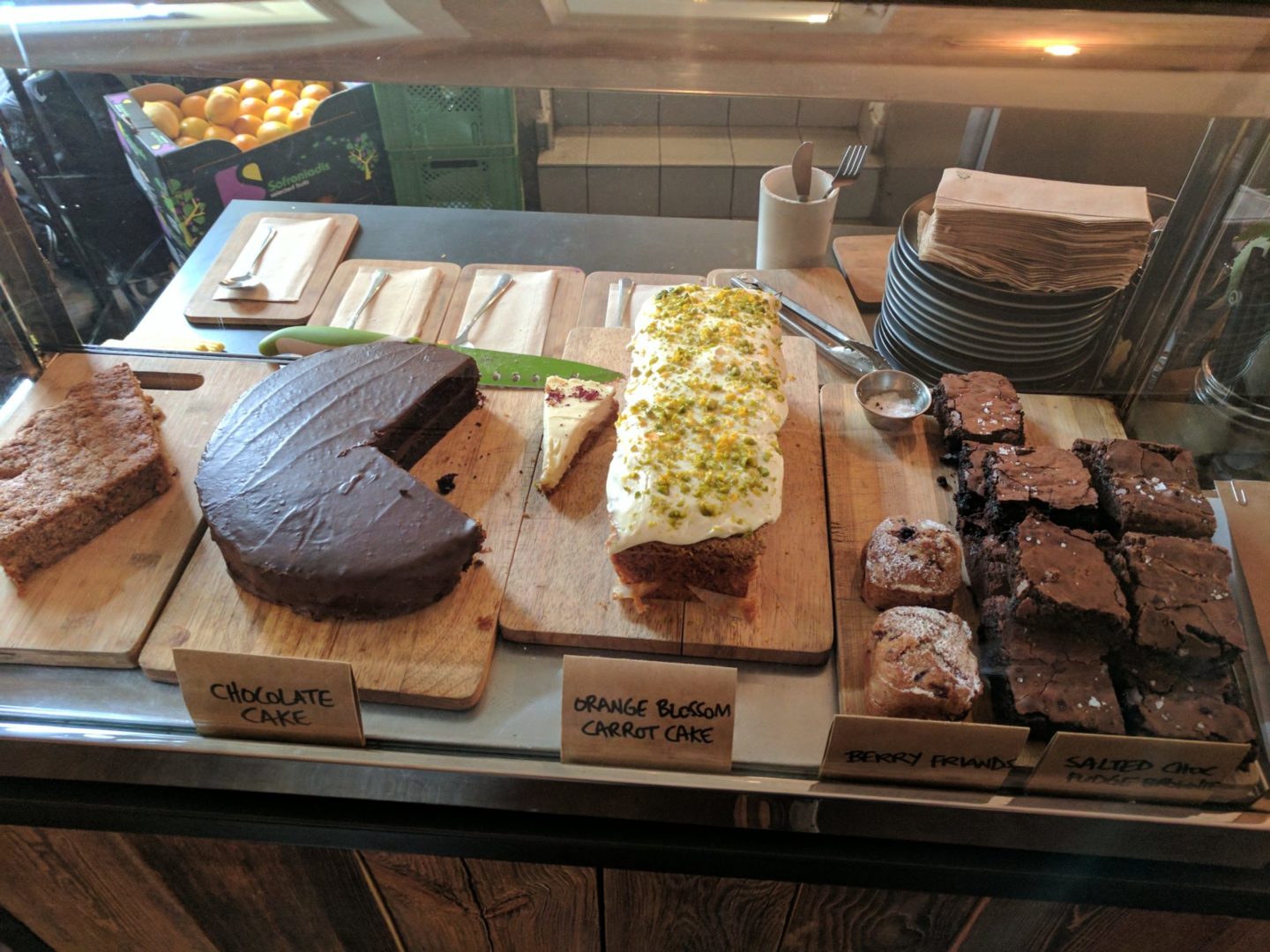 יש להם גם עוגות (גם עוגה טבעונית), מוזלי, סלט פירות ועוגיות.