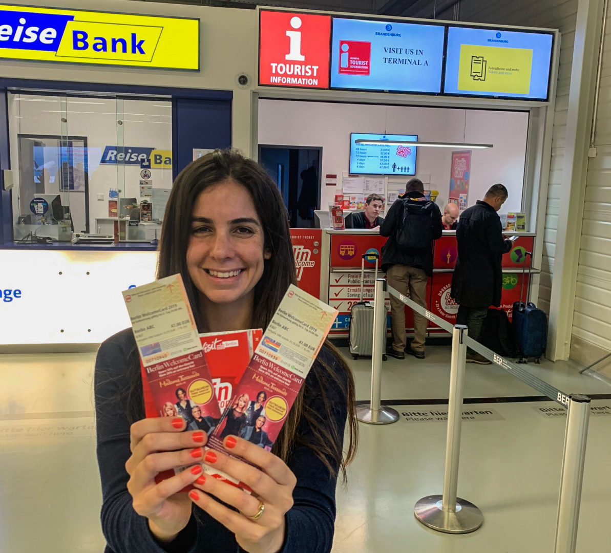 כשנחתנו הלכנו לדוכן של המידע שכתוב עליו גם WelcomeBerlin כדי לאסוף את הכרטיס תחבורה שלנו שקיבלנו באדיבות מVisit Berlin . את הכרטיס Berlin Welcome card  ניתן לרכוש מהדוכן לפני היציאה מהשדה תעופה. זהו כרטיס שמוזיל לכם את עלויות התחבורה הציבורית בעיר וזה בהתאם למספר הימים שתשהו בעיר. אפשר לקנות כרטיס ABC שכולל גם את הנסיעה מהשדה תעופה לעיר.