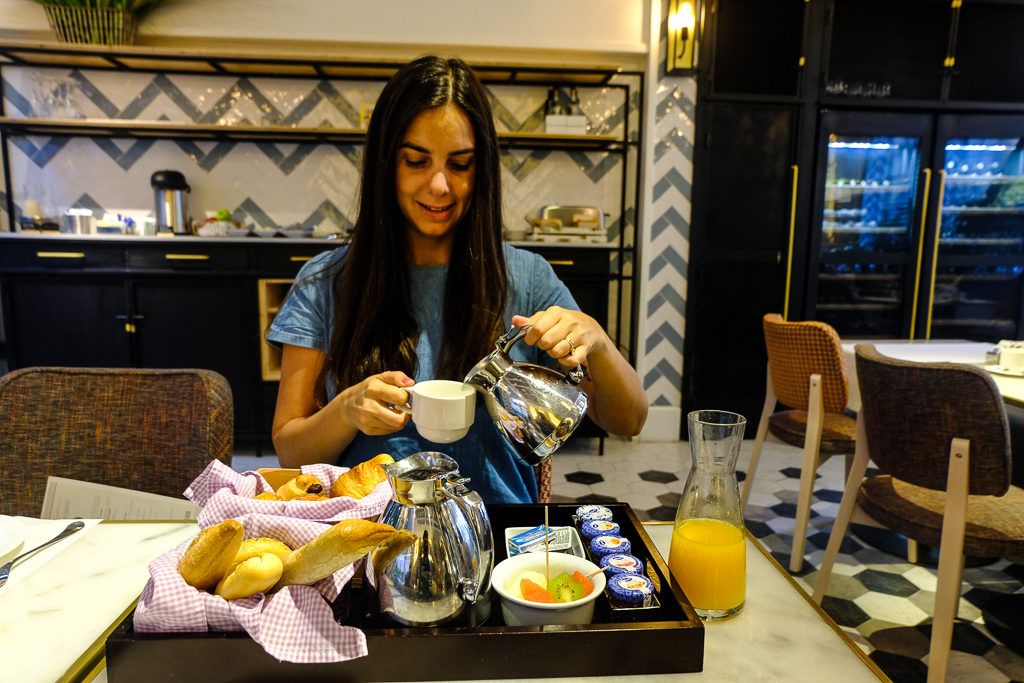 ארוחת הבוקר מוגשת א־לה־קארט: תחילה מגש שמוגש לשולחן ולאחריו תפריט עשיר שממנו ניתן להזמין בחופשיות. האוכל היה מצוין, כולל אפשרויות כמו חלב סויה. גם הבר והמסעדה של המלון מומלצים מאוד. לפני שהמשכנו לקוסטה בראווה אכלנו שם ארוחת צהריים, והמחירים היו סבירים בהחלט.