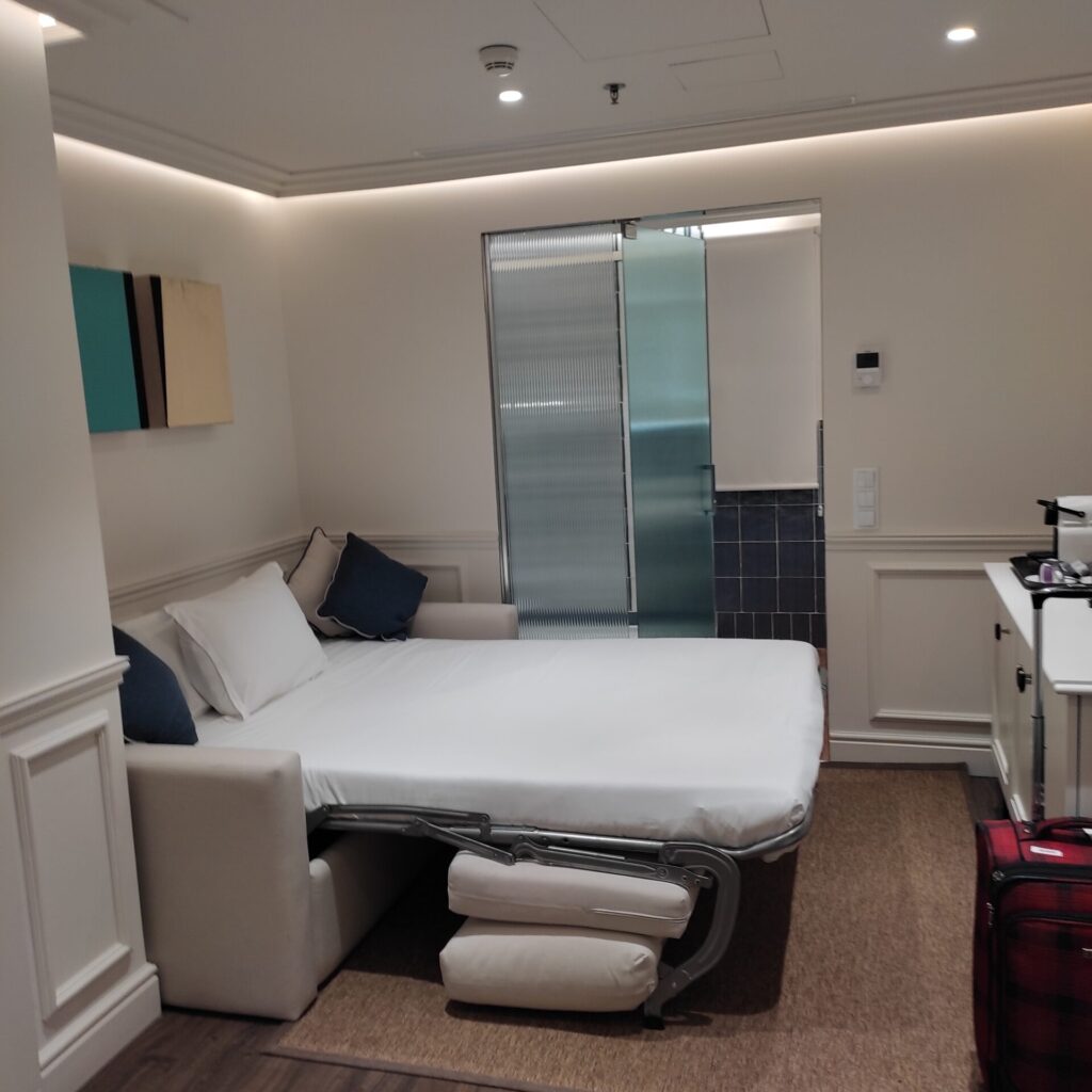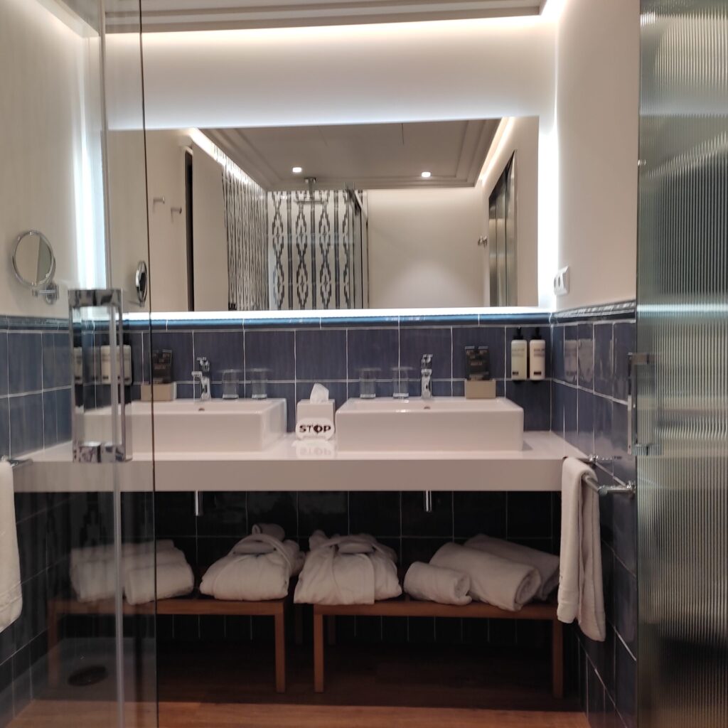 אני התארחתי כאן לבד לפני הפלגה בקרוז, ובשל בעיה בהזמנה קיבלתי שדרוג חינם ל־Junior Suite – פינוק לא צפוי. הסוויטה כללה אזור שינה עם שולחן עבודה נוח, ספה נפתחת וחדר רחצה גדול ומעוצב. ממרפסת הז’ולייט נשקף נוף עירוני נהדר.