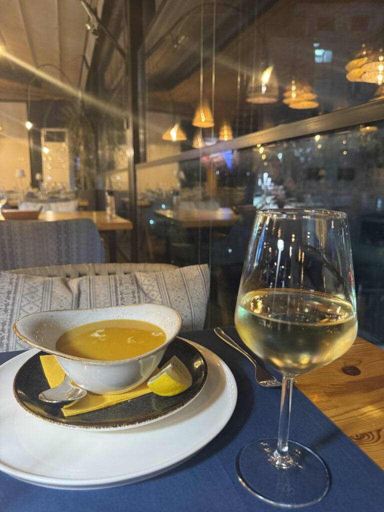 הזמנו מרק דגים שהיה טעים מאוד, ריזוטו פירות ים ומנת דג בגריל sea bass שהיתה מעולה ממש עם ירקות צרובים בגריל ממליצה על המנה הזאת.