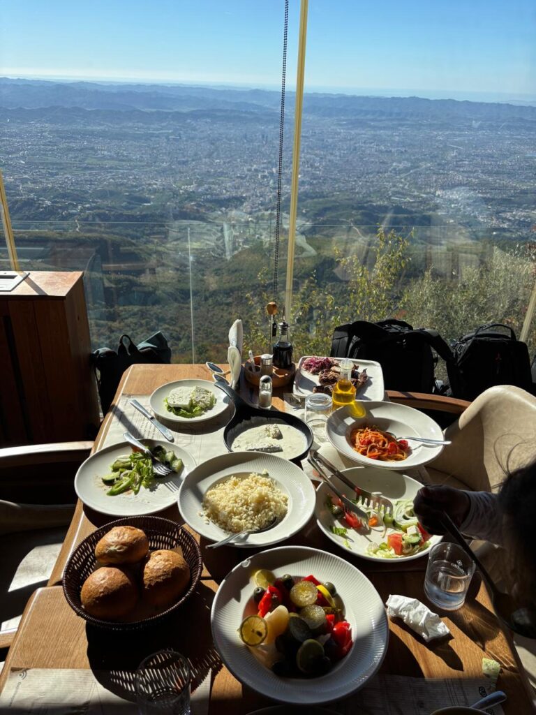 טיפ: ישר עם ההגעה למעלה, הזמינו מקום במסעדה כדי לשבת ליד החלונות, כי המקומות האלו מתמלאים במהירות. ליד המסעדה יש נקודת תצפית יפהפיה עם עיטור של לב וספסל , מקום מעולה לצילומים. שם המסעדה: Dajti Balcony's.