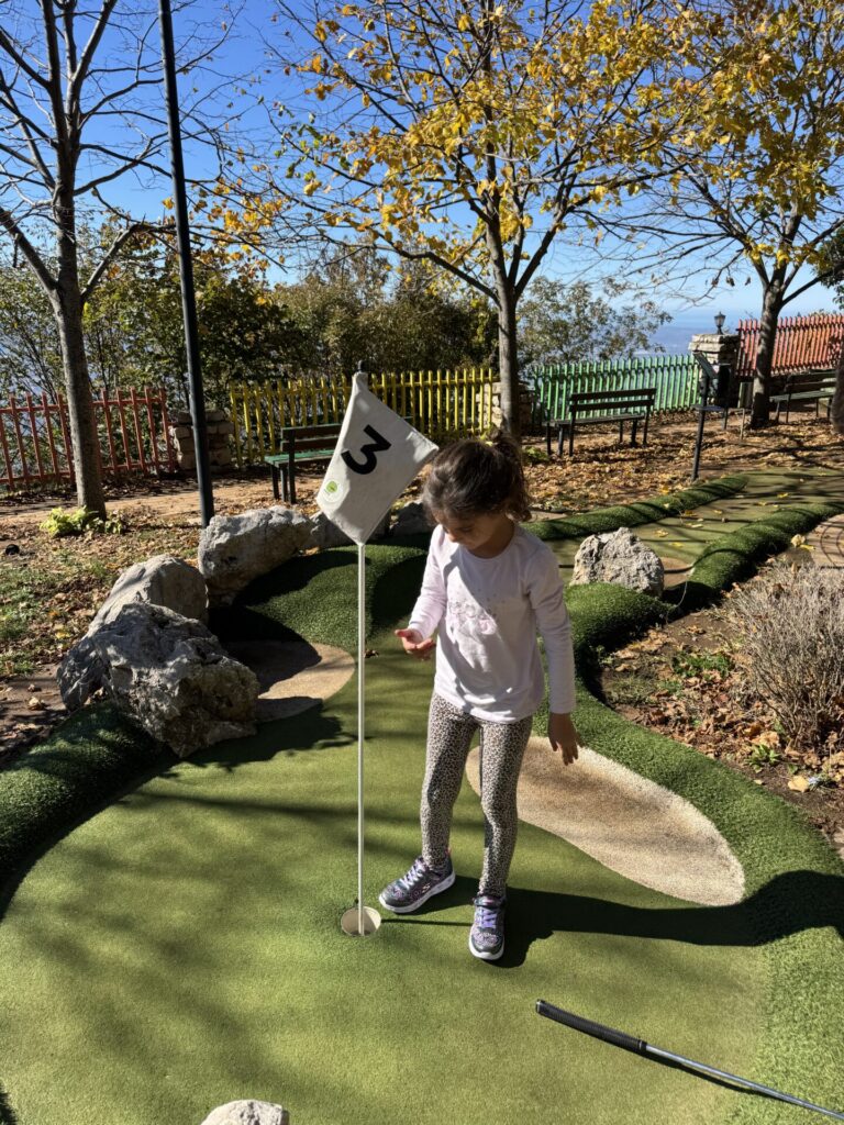 כשמגיעים למעלה מגלים עולם שלם ומרגש , פארק חבלים, מיני גולף (מאיה שיחקה והתרגשה מאוד), רכיבה על סוסים, מצנחי רחיפה, פיינטבול ועוד. יש שם גם בית מלון עם בר בקומה 7, נקודות תצפית ומסעדה עם נוף מהמם ואוכל מצוין.