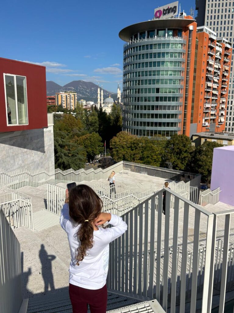 את אזור Pyramid of Tirana ראינו במקרה מהרכב. מאיה ממש התלהבה מהבתים הצבעוניים ומהארכיטקטורה הייחודית, אז החלטנו לעצור ולבדוק מה יש שם. מדובר באזור היסטורי עם בתים צבעוניים בצורות שונות ובמרכזו הפירמידה, שנבנתה ב־1988 בתקופת המשטר של Enver Hoxha כמוזיאון לזכרו. כיום המקום שופץ והפך למרכז תרבותי־קהילתי, עם מדרגות לראש הפירמידה שממנה יש תצפית טובה על העיר ובית קפה קטן.