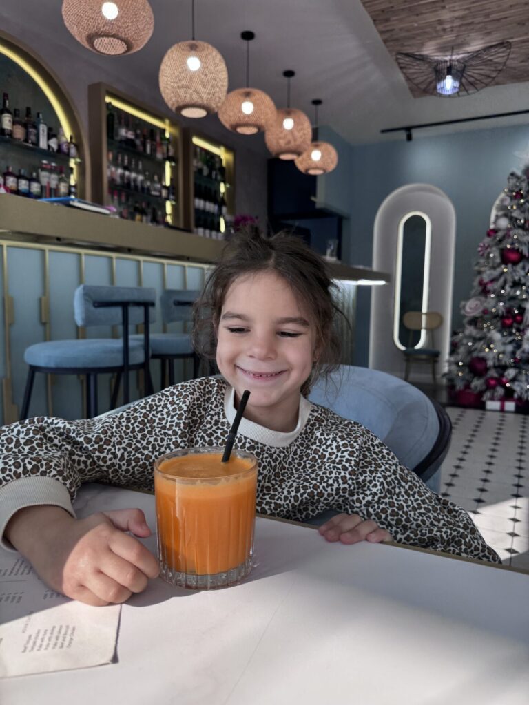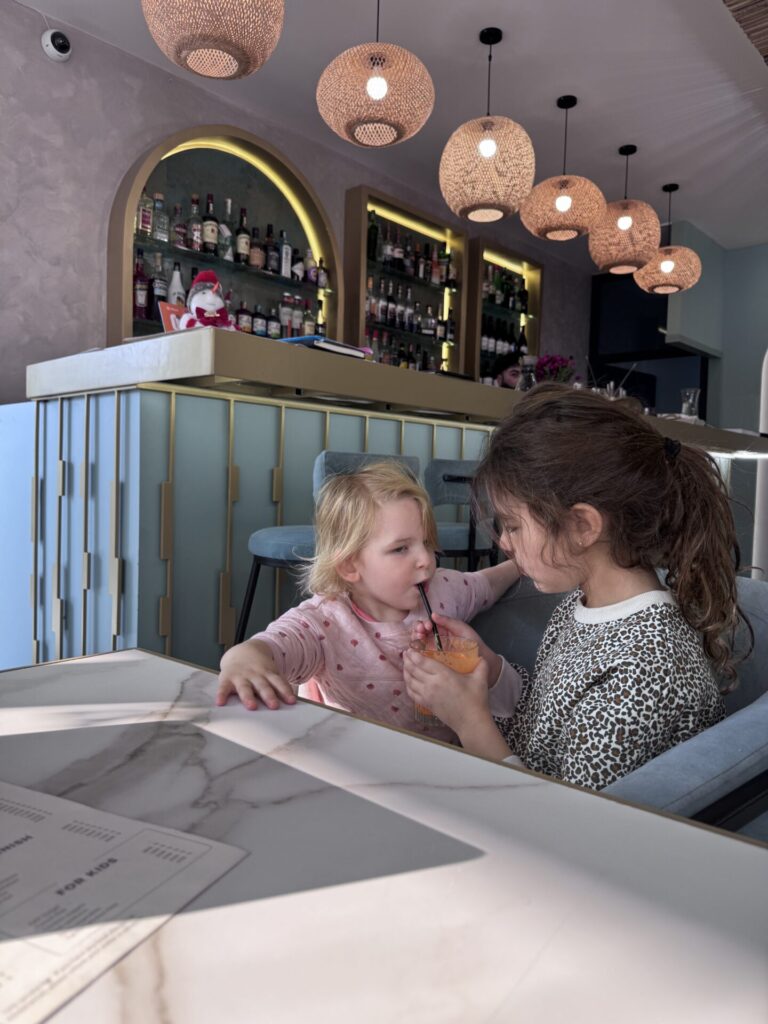 הילדים נמצאים למעלה עם אחת העובדות, ויש שם מגוון משחקים: מגלשה, בריכת כדורים, פינת יצירה ועוד. מאיה וסופי היו שם כמעט שעתיים ולא רצו לרדת בכלל. הן ירדו רק כשהיו רעבות, ואז התיישבנו כולנו לארוחת צהריים במסעדה למטה.
