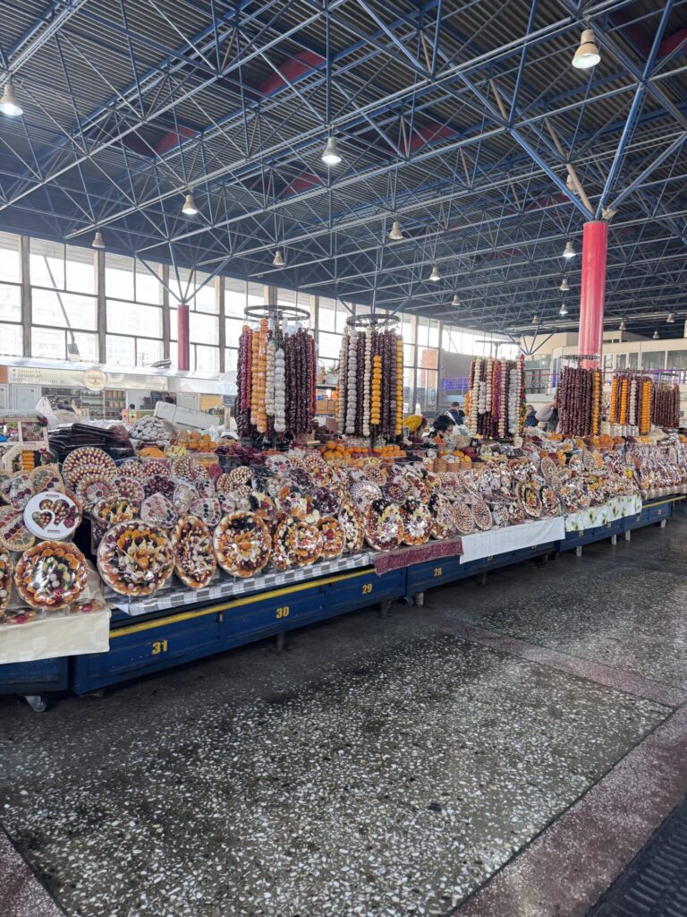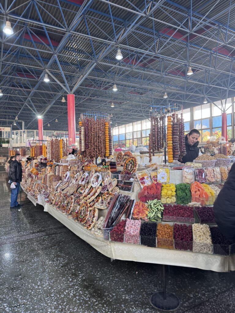 בשוק תמצאו כמעט כל דבר שאפשר לחשוב עליו, והכול תוצרת מקומית וטעימה במיוחד. יש אזור שלם המוקדש לפירות יבשים – גן עדן לחובבי הז’אנר, עם מבחר ענק. בנוסף, יש דוכנים של פירות וירקות באיכות מעולה; אנחנו קנינו שם תותים שהיו פשוט מהטעימים שאכלנו. כמובן שיש גם שפע של תבלינים, ואי אפשר היה להתאפק – קנינו כמה סוגים לקחת איתנו הביתה.