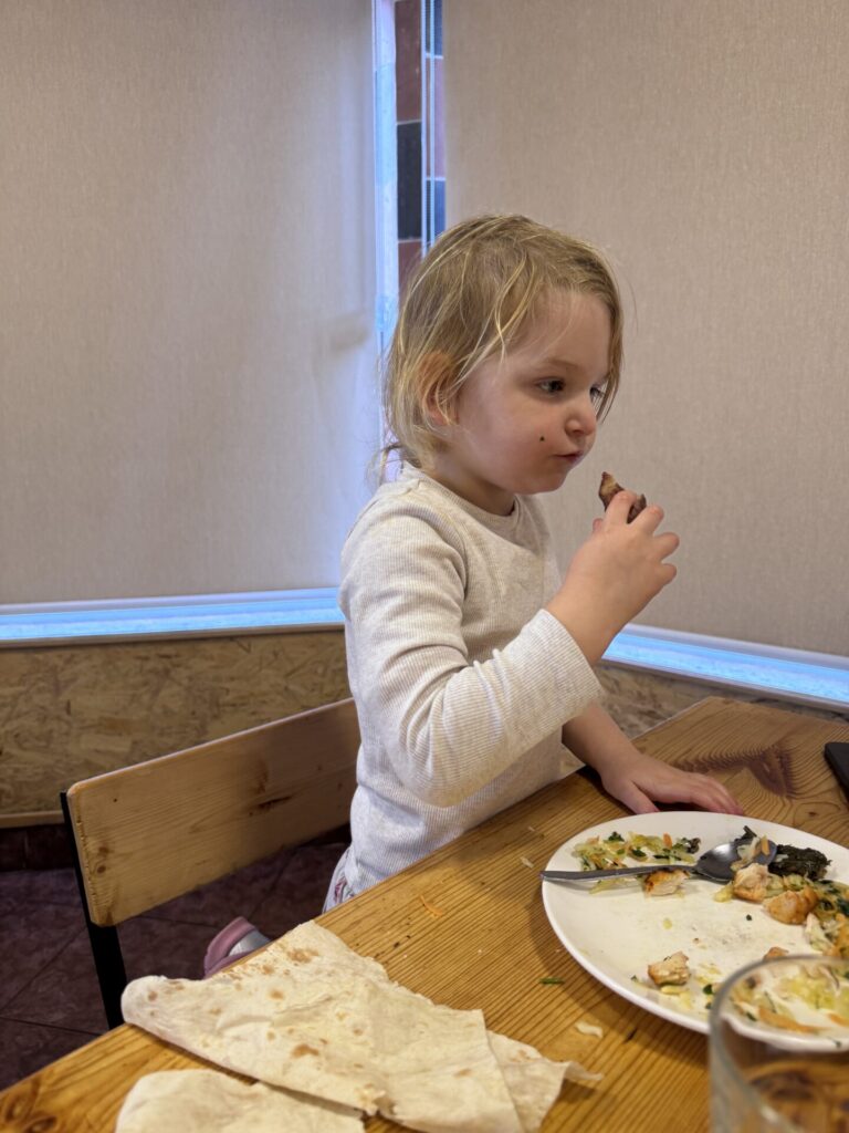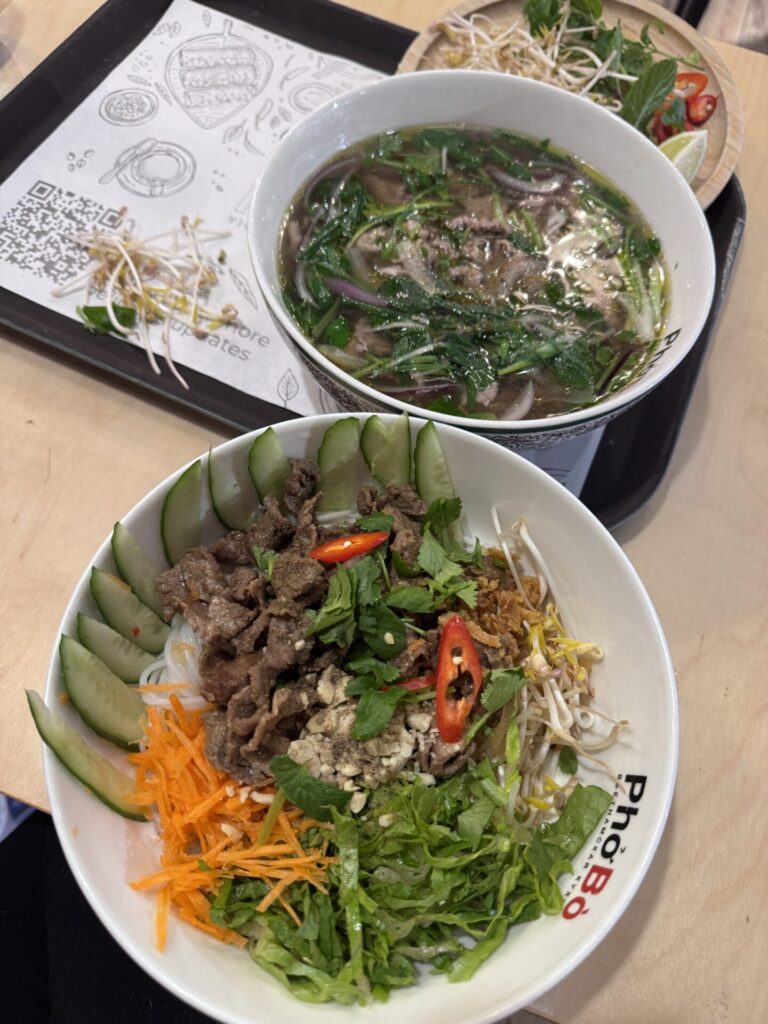 PhoBo – אנחנו מאוד אוהבים אוכל ויאטנמי, וכשראינו שיש מסעדה עם ביקורות טובות החלטנו לנסות. מהרגע שנכנסנו הריחות החזירו אותנו לטיול שלנו בווייטנאם. הזמנו מרק פו שרומן והבנות ממש אהבו, אני הזמנתי סלט בקר מוצלח במיוחד, וגם אורז מוקפץ עם עוף שסופי אהבה (ומאיה פחות). הטעמים היו אותנטיים והאוכל הגיע במהירות.