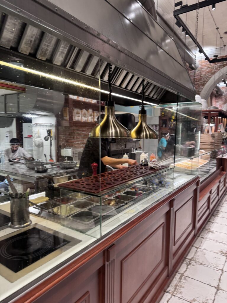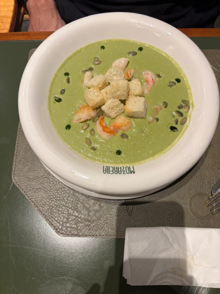 Mozzarella – מסעדה שנמצאת גם היא ליד כיכר רפובליקה. בערב אחד התחשק לנו פסטה, והיא הייתה בחירה טובה. הזמנו מנת חציל עם פטה שהייתה טעימה, רומן לקח מרק נענע עם פירות ים (אני והבנות פחות התחברנו, הוא דווקא כן), לבנות הזמנו פסטת בולונז שהן מאוד אהבו, ולנו פטוצ’יני פטריות. רק בדיעבד שמנו לב שהיא מגיעה גם עם חזה עוף, מי שפחות אוהב יכול לבקש בלי. השירות שם היה מעולה ואחלה מחירים ומה שהיה נחמד זה שאפשר לראות את הטבחים מכינים את הרוטב של הפסטות אז עבור הבנות זאת היתה אטרקציה והן עמדו שם וצפו בבישול עד שהאוכל היה מוכן.